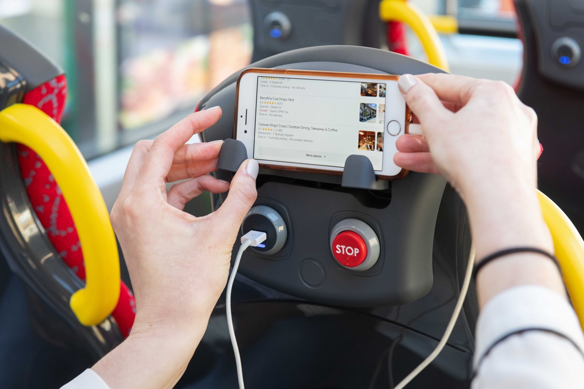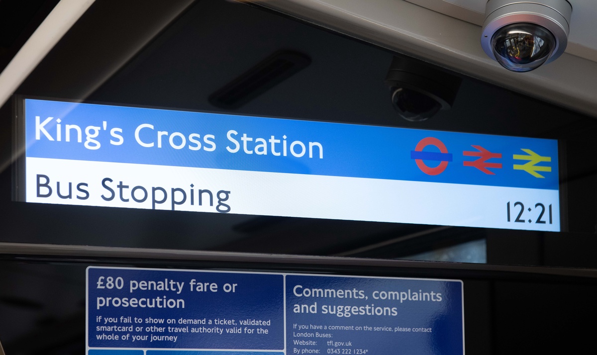 New digital signage on board the buses shares a wider range of real-time information, including the time to the next stop, disruptions, space on the next bus and service updates for Tube and Overground services.
